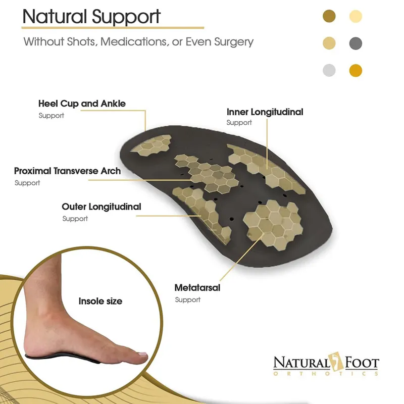 تسكين فوري للألم مصمم خصيصًا لك - تتوفر تقويمات العظام بمقاسات أحذية للرجال والنساء لضمان تجربة مريحة قدر الإمكان؛ لا يوجد مقاس أو طول عام يناسبك. تعليمات سهلة المتابعة لتخصيص النعل الداخلي التقويمي لاحتياجات جسمك مدى الحياة. ارتديها في أحذية الجري والأحذية الطويلة وجميع أنواع الكعب. مصممة خصيصًا للأقواس المنخفضة إلى المتوسطة والأقدام المسطحة (فرط الكب). مواد ممتازة صنع في الولايات المتحدة الأمريكية - مصنوعة من بلاستيك EVA شبه الصلب المضاد للميكروبات الذي يوفر الثبات المثالي للحصول على أفضل النتائج وتسكين دائم للألم. تجنب النعال الرخيصة متعددة الطبقات الملتصقة ببعضها، والتي تُخفف من ألم قدميك دون توفير شفاء فعال. هذه هي النعال التقويمية التي يوصي بها الأطباء وأخصائيو تقويم العظام.